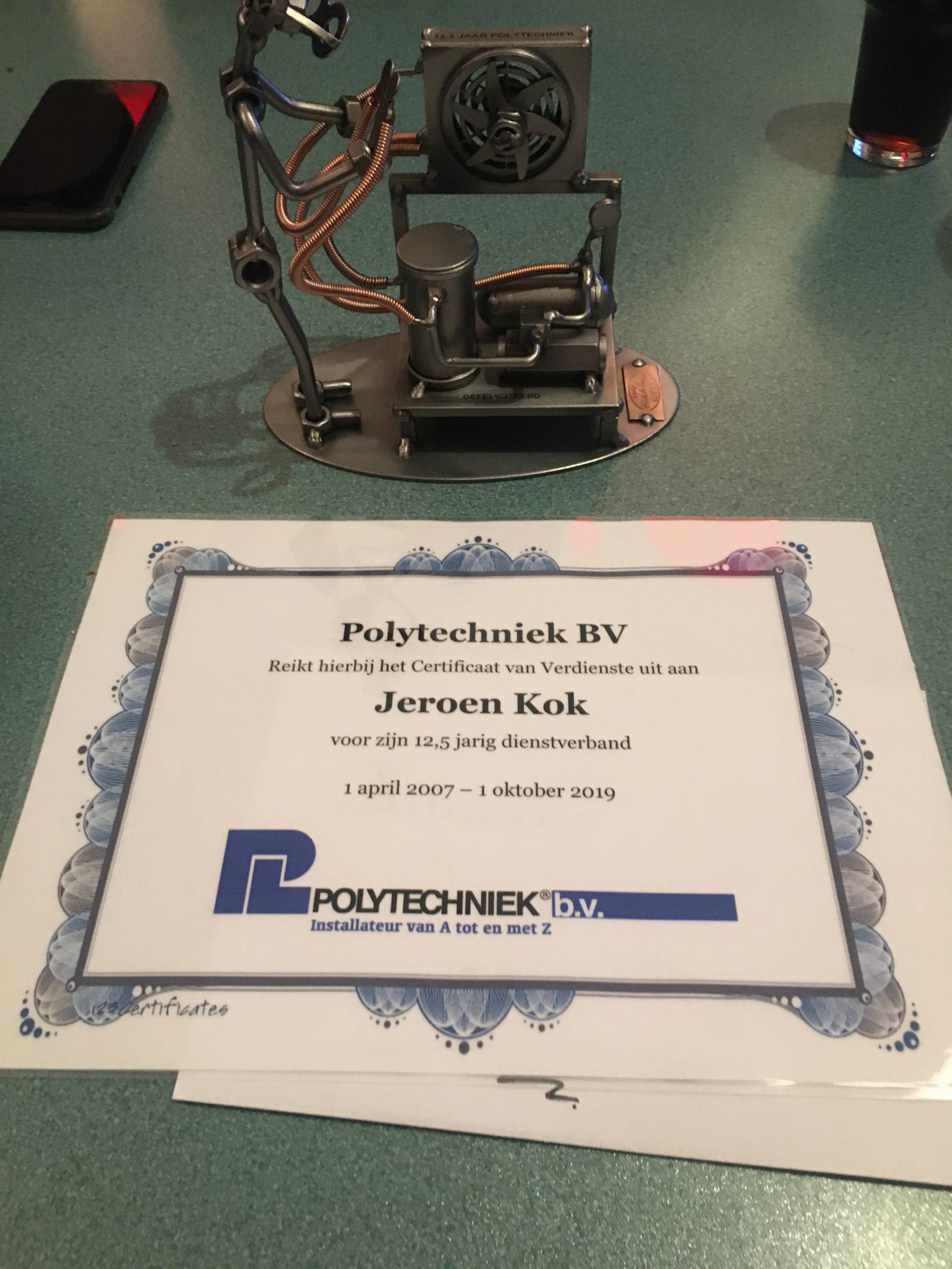 Jeroen Kok 12,5 jaar in dienst – 2019